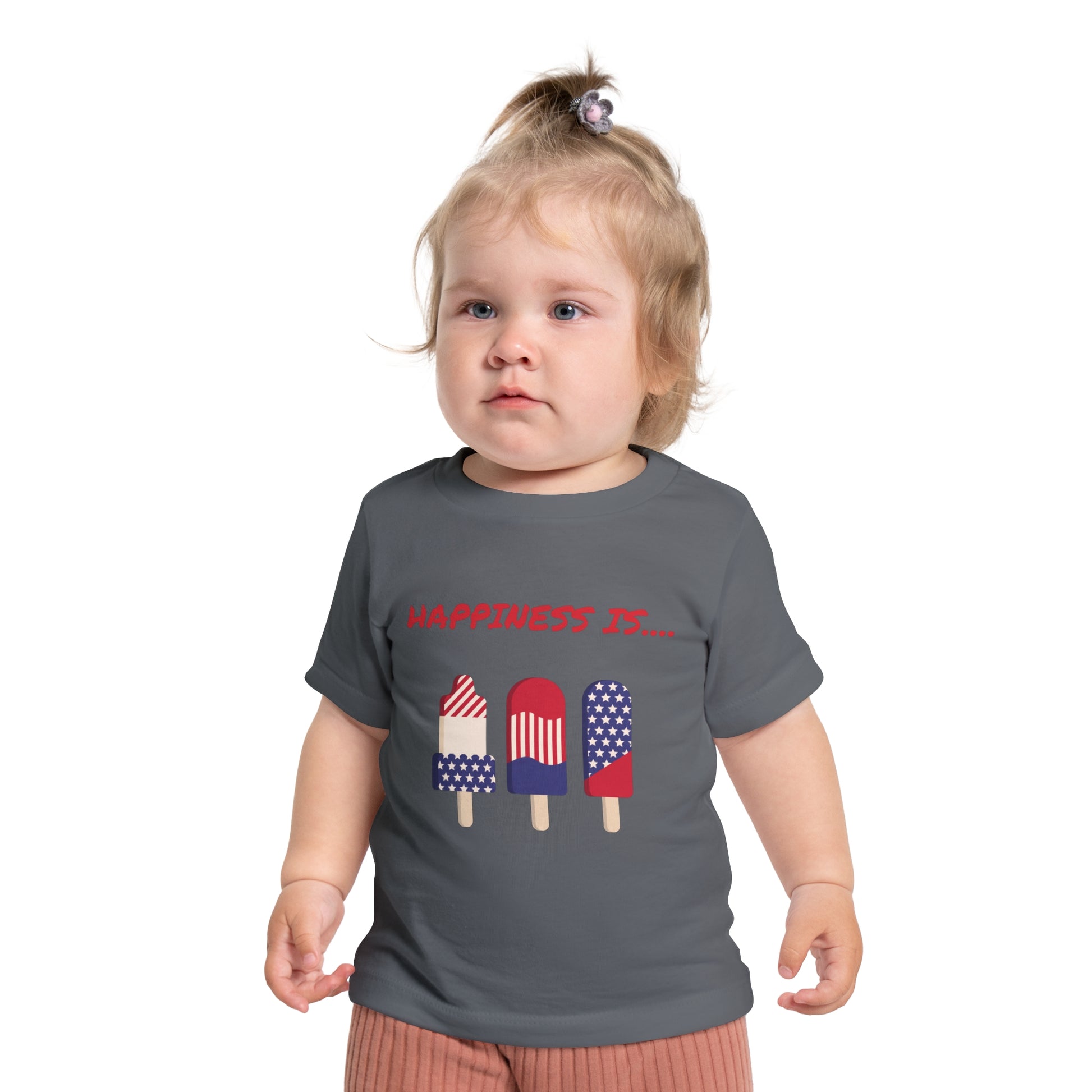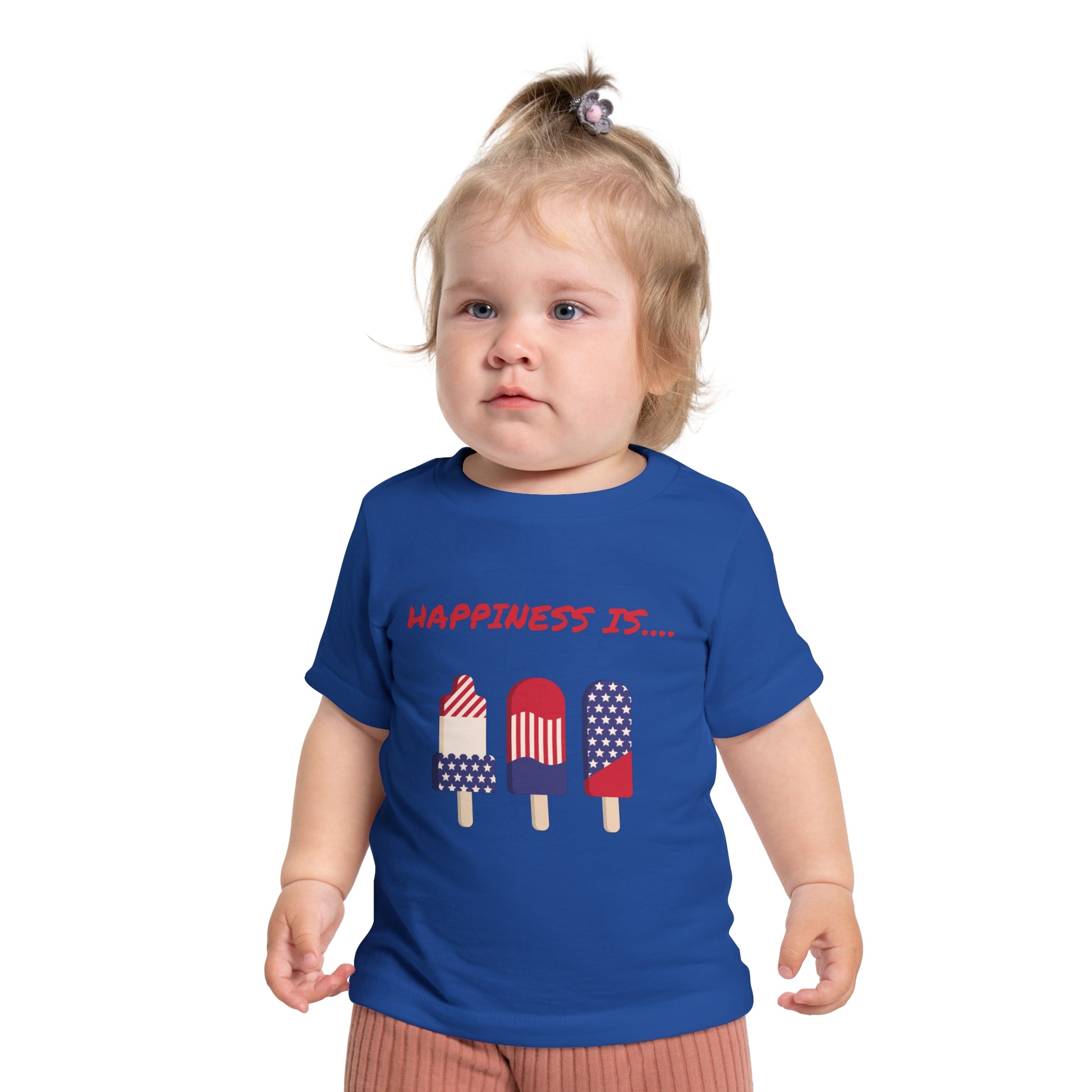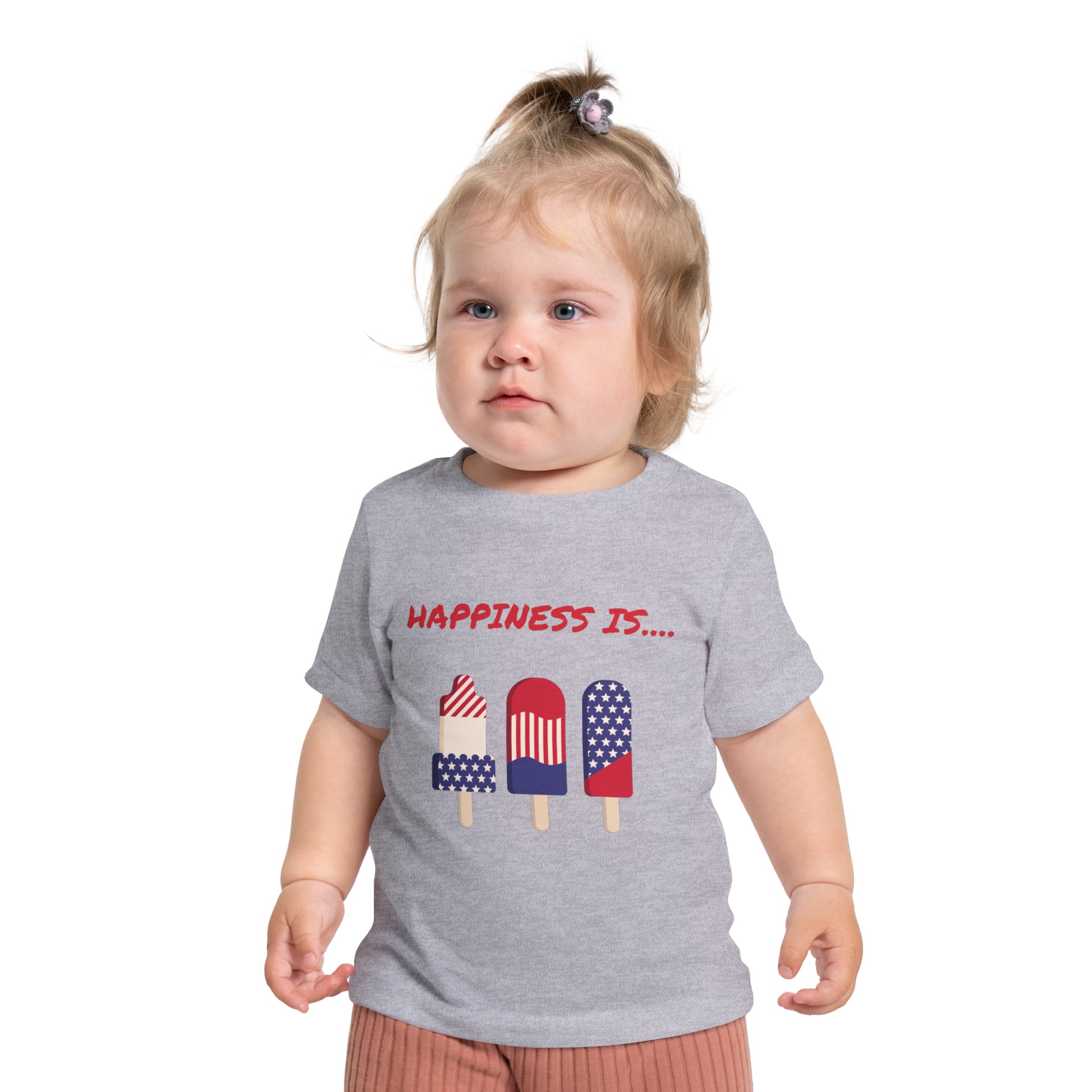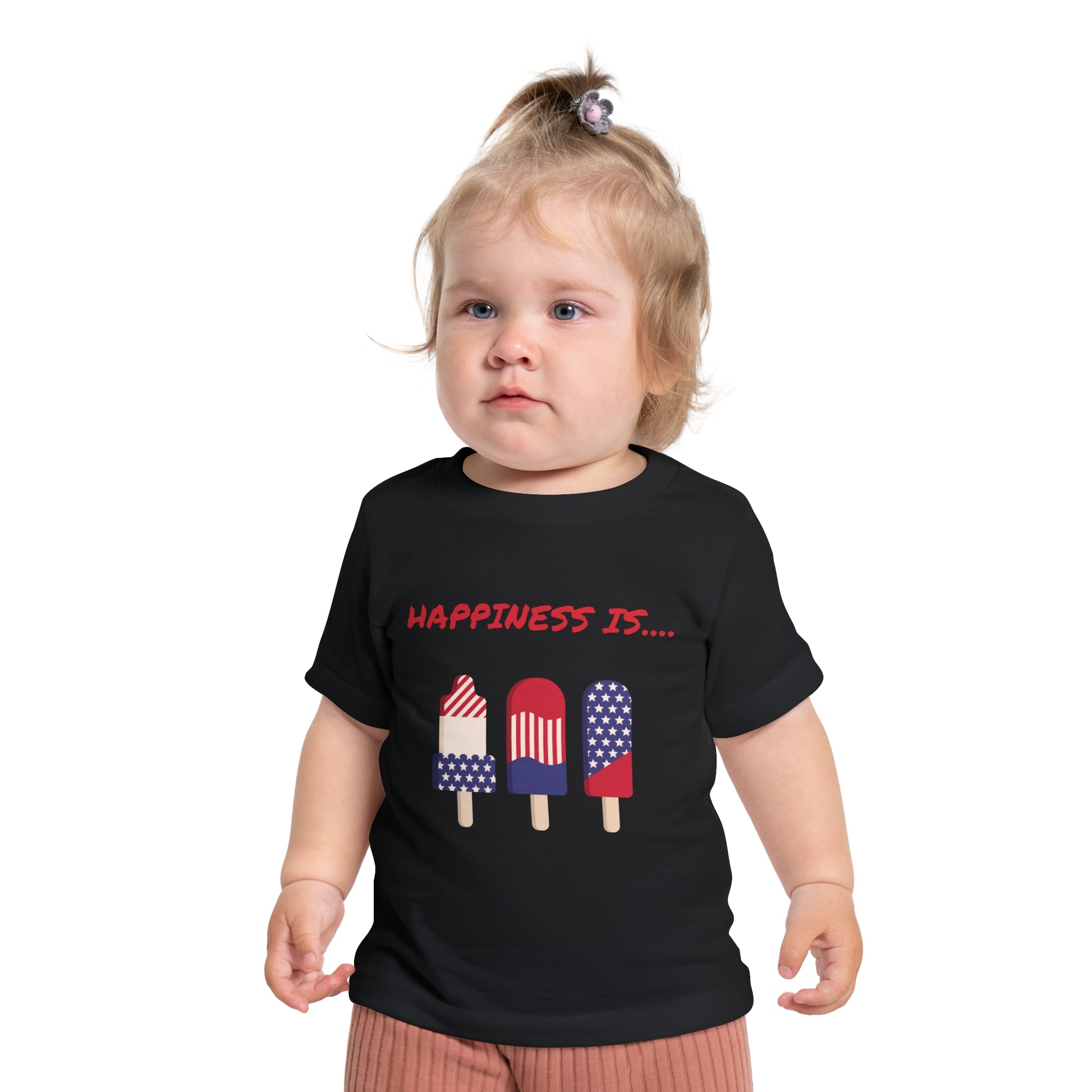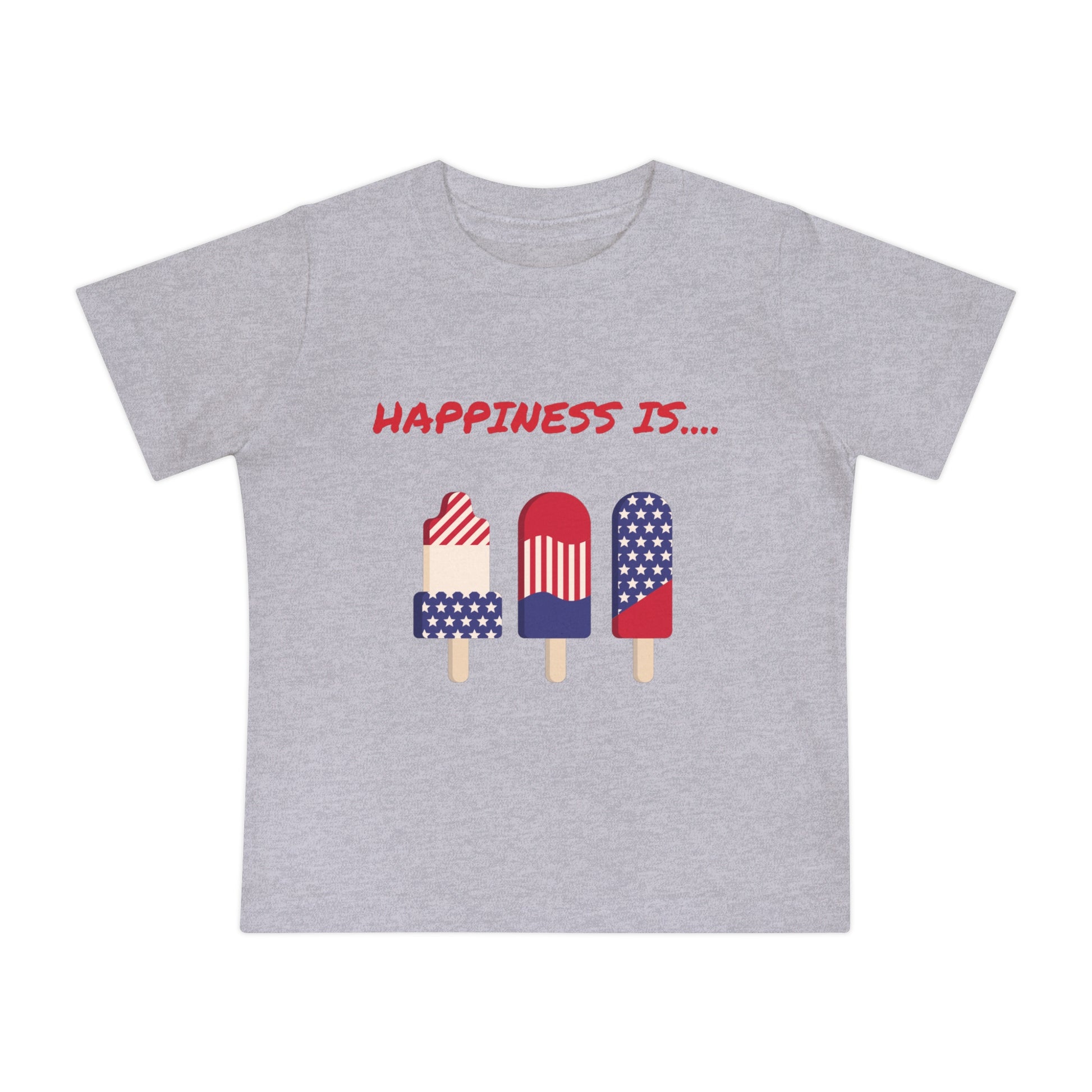 This tee celebrates the simple joys of life with its "Happiness is..... Ice Cream" slogan. The playful design features red, white, and blue ice cream treats, reminding us to indulge in the sweet moments.