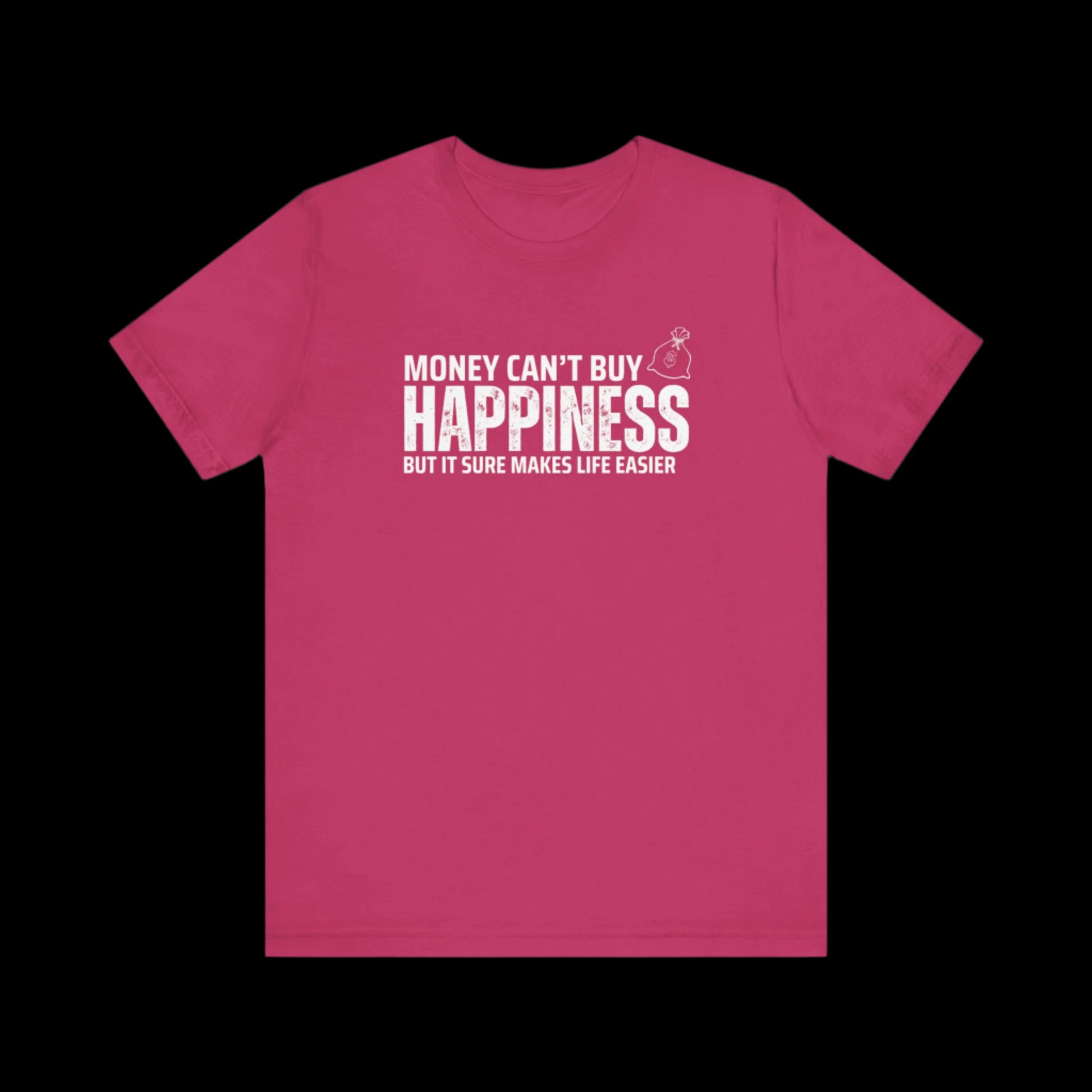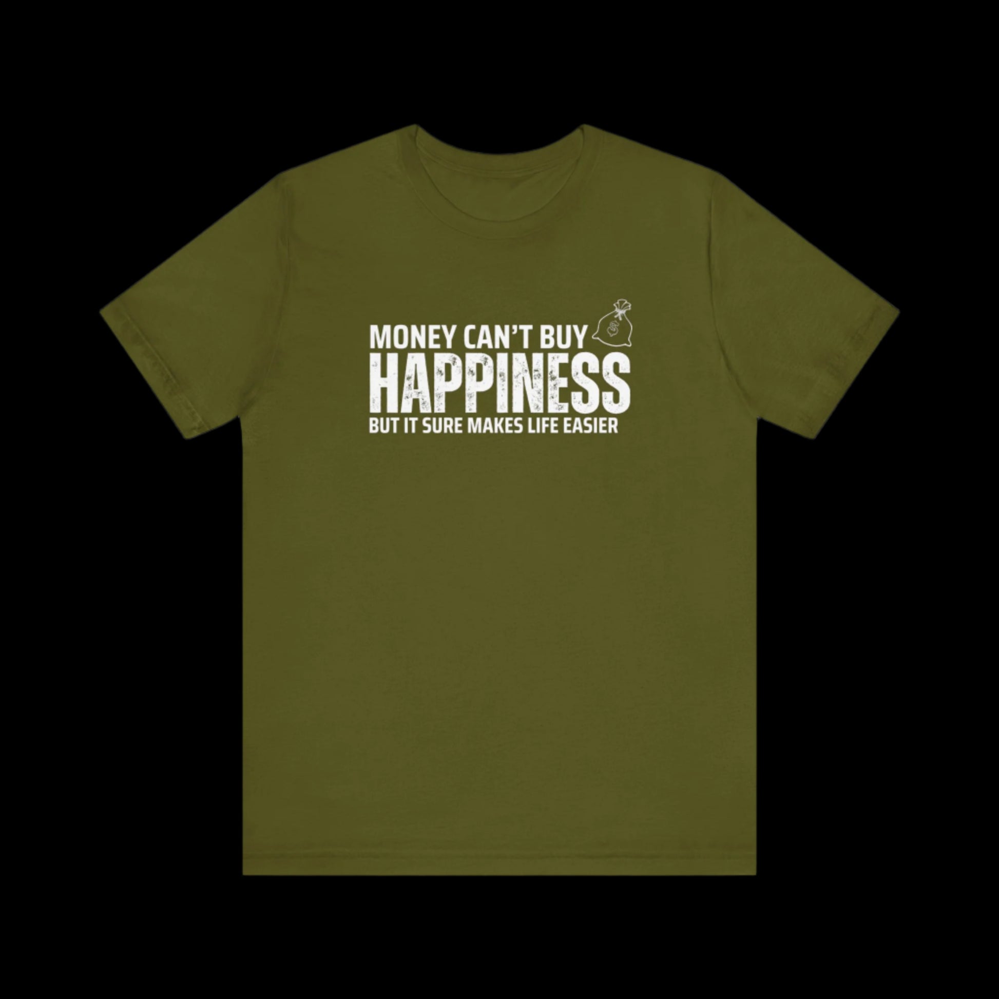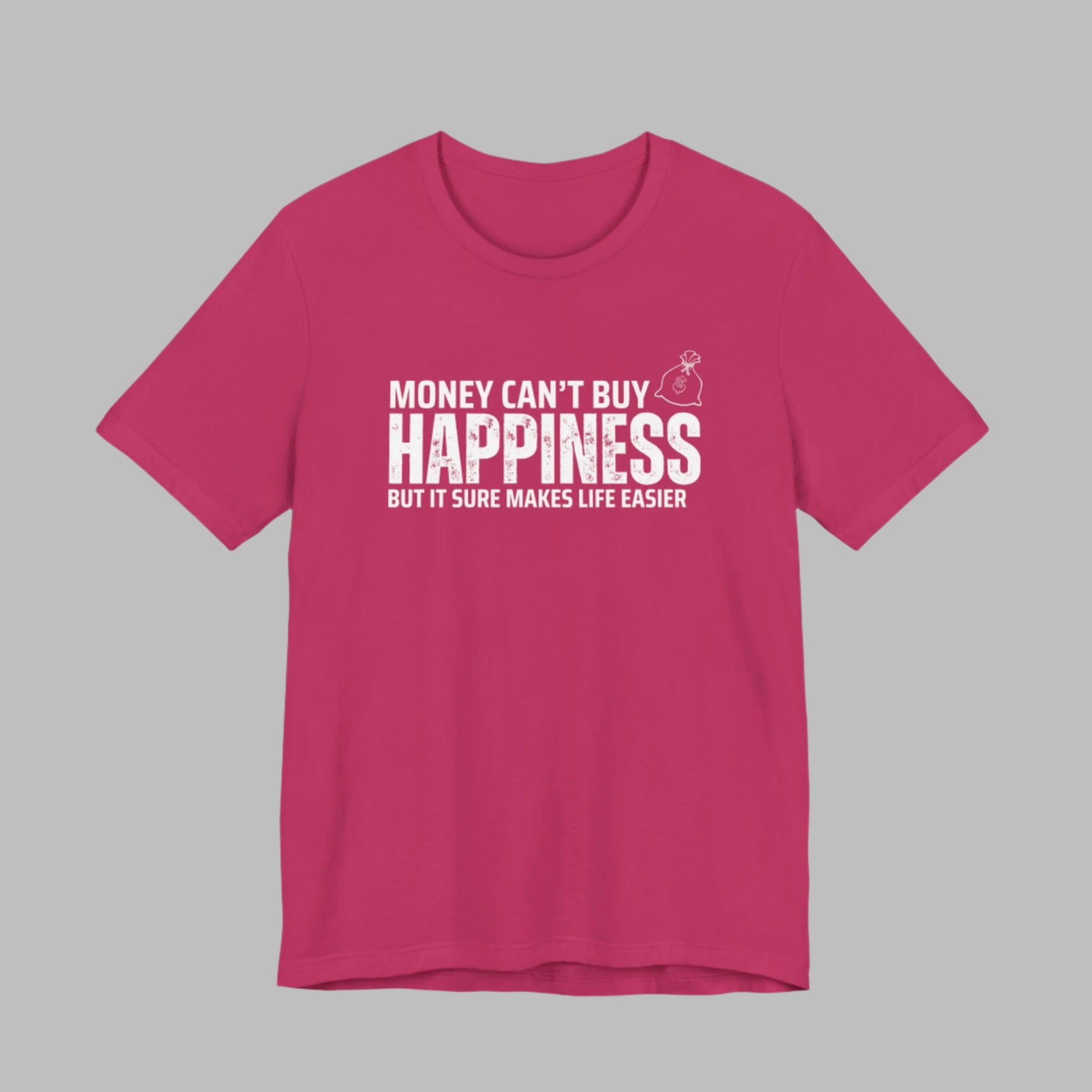 Whoever said "money can't buy happiness" clearly hasn't experienced the ease of life it can bring. This playful tee reminds us that while money may not always bring happiness, it can surely make things a little easier. (No promises, though!)