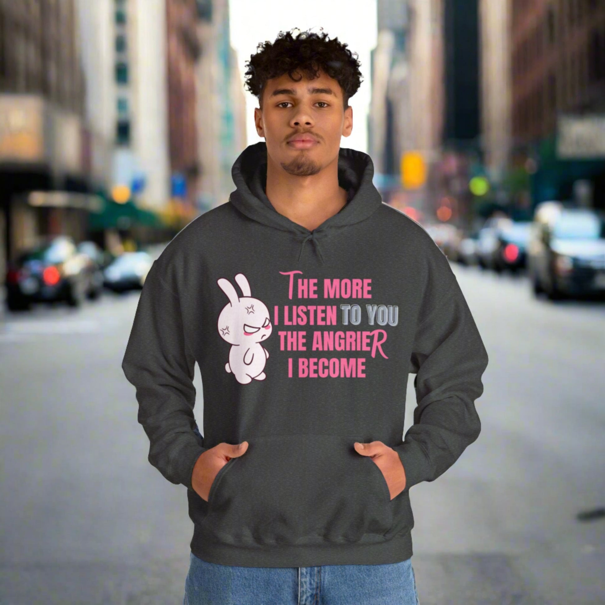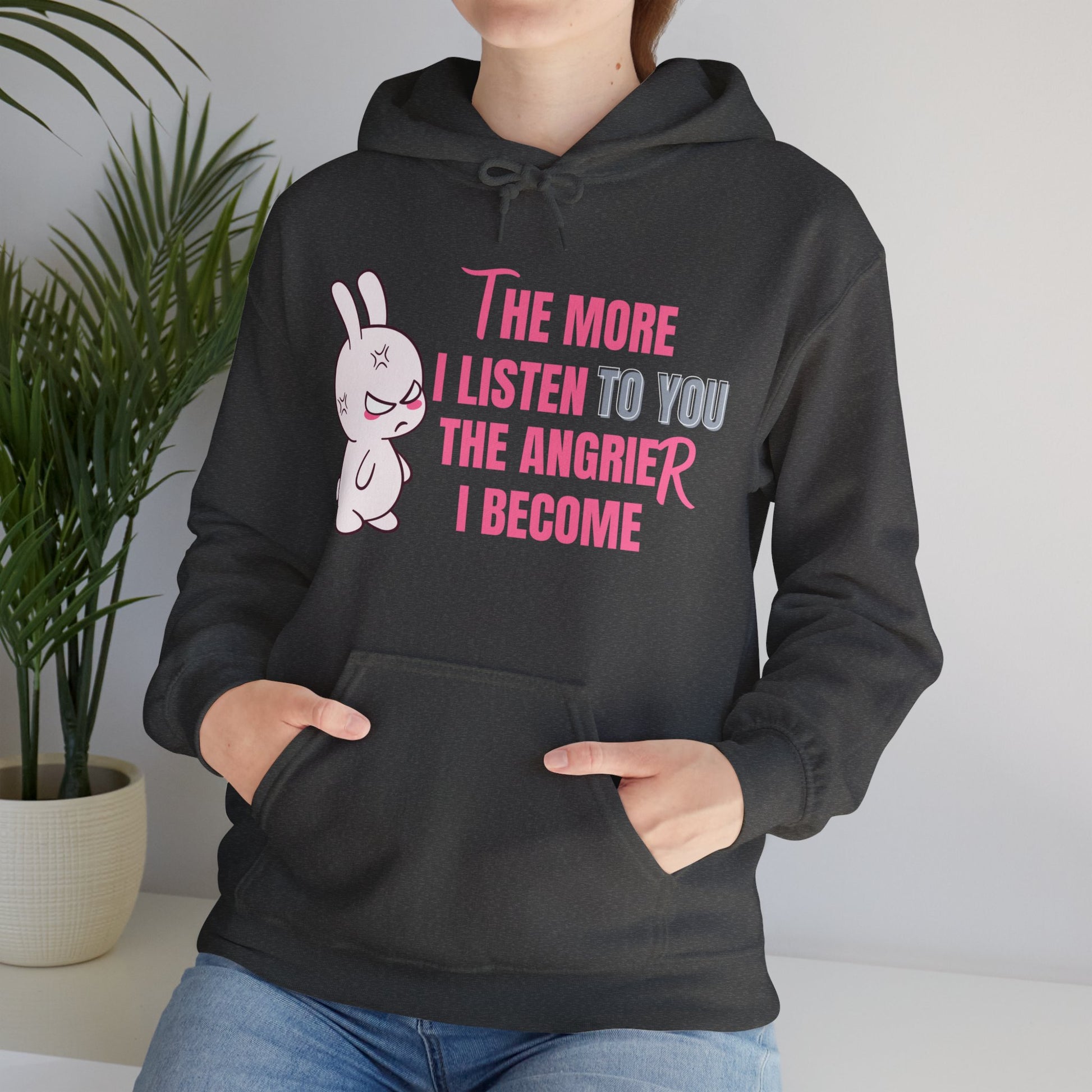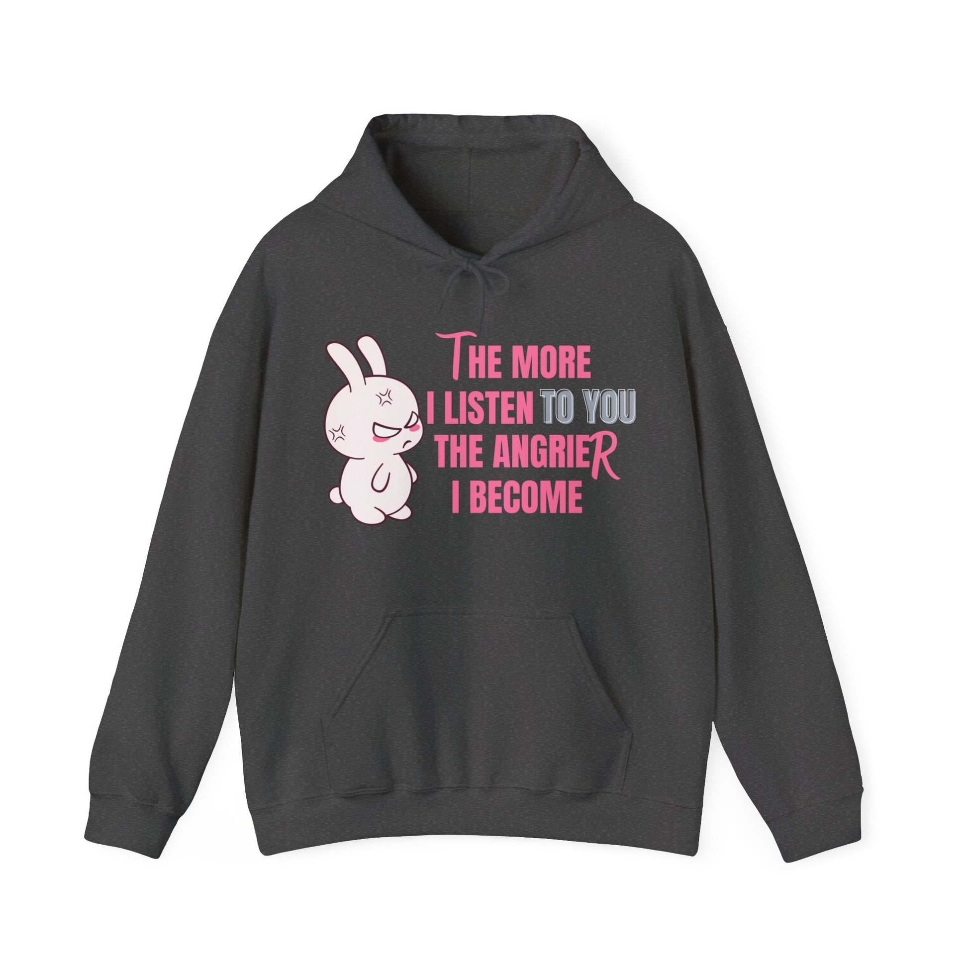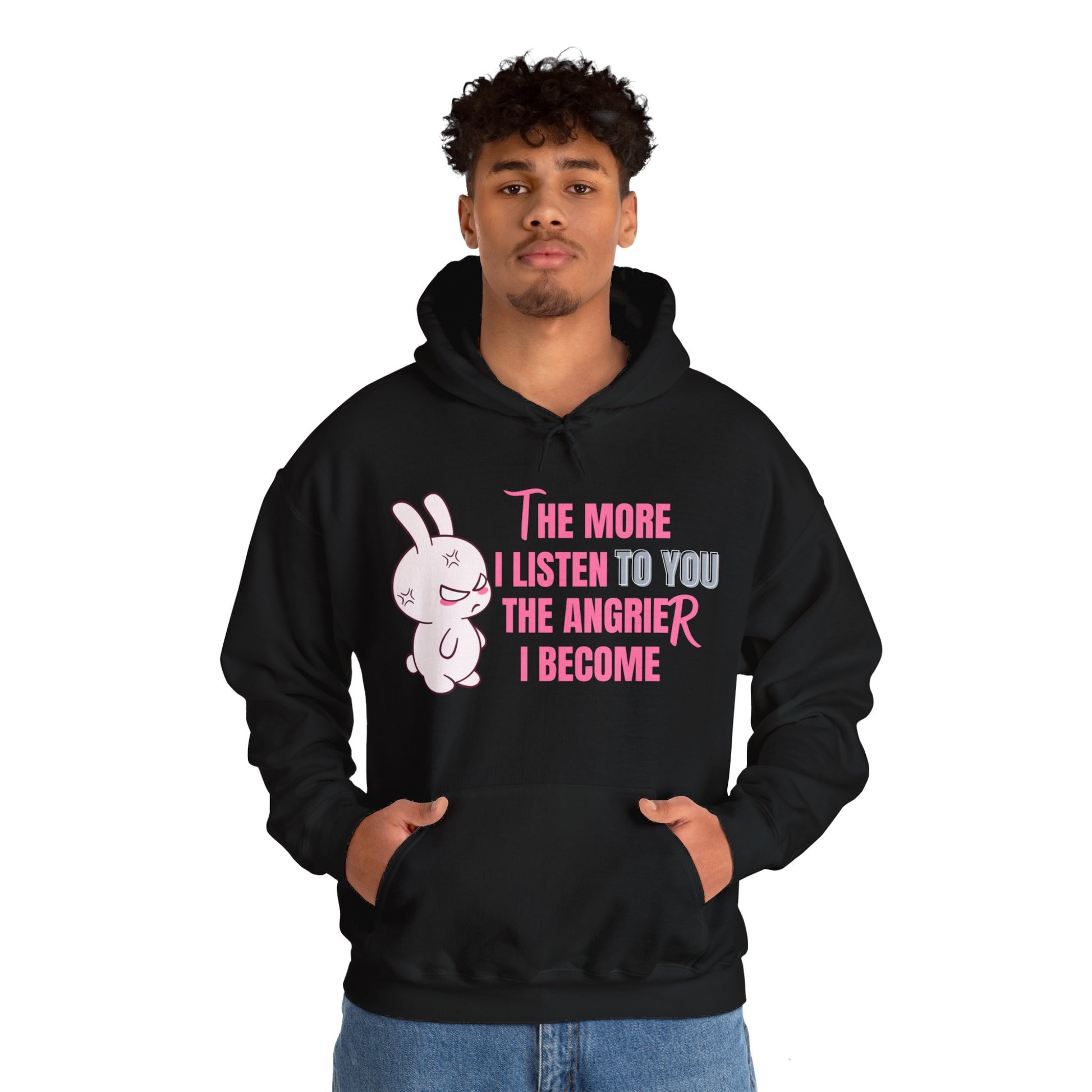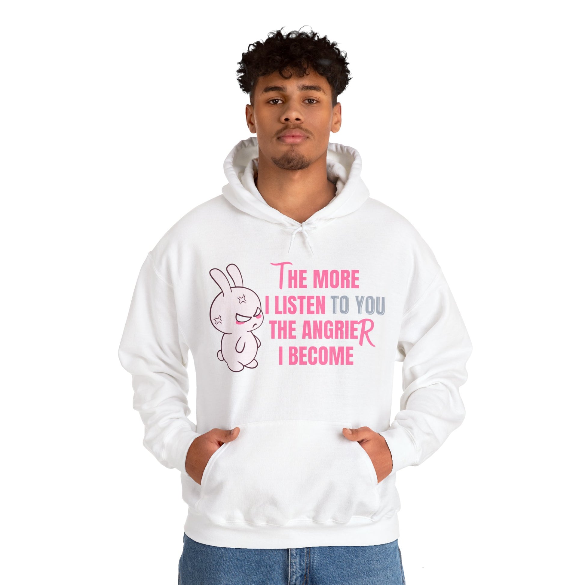 This "snarky little" Angry Bunny hoodie is sure to add some attitude to your wardrobe. This pullover is perfect for those who don't take themselves too seriously. Let the world know you mean business (or at least the bunny does!) with this humorous and unique sweatshirt.