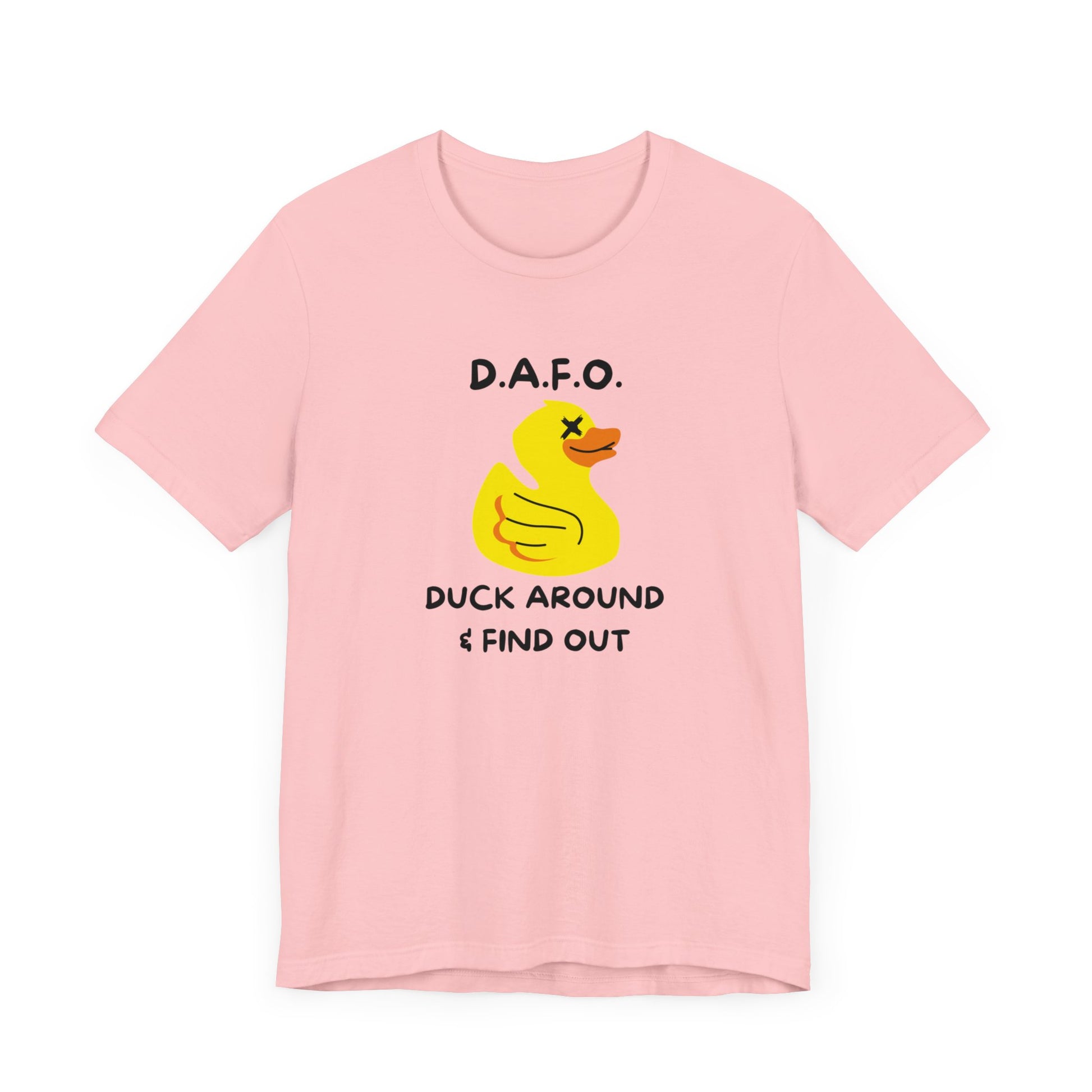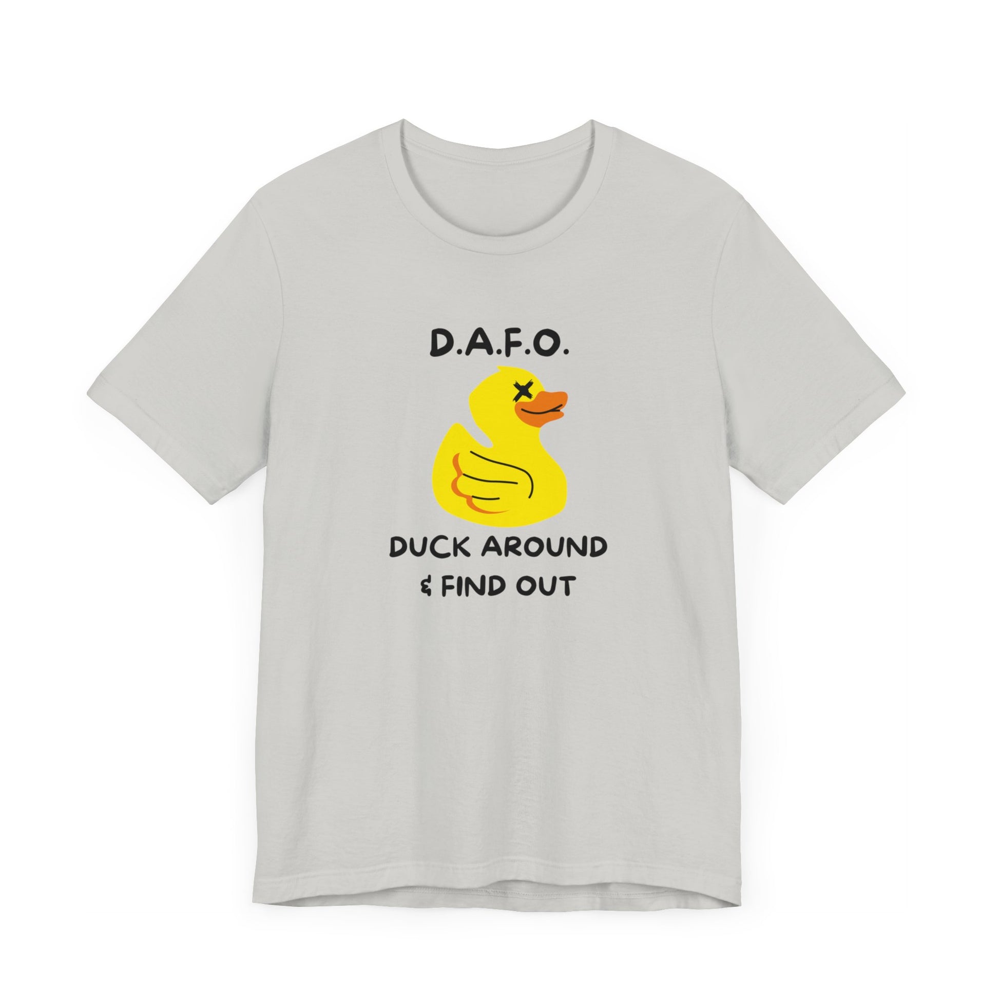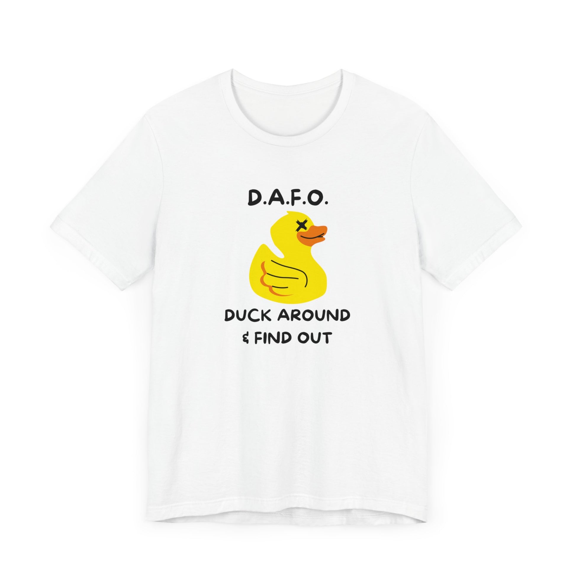 Get ready to quack up with our D.A.F.O. Tee! With a whimsical warning to "Duck Around & Find Out," this tee is perfect for those who don't take themselves too seriously. Made with soft cotton for comfort and a playful tone, this tee is a must-have for anyone looking to add some humor to their wardrobe.
