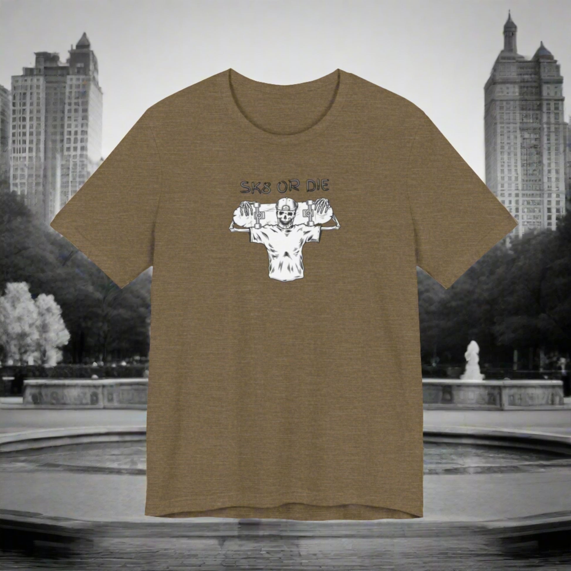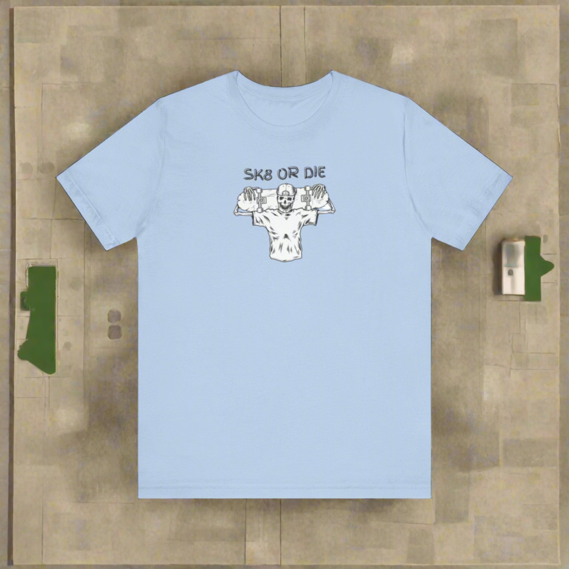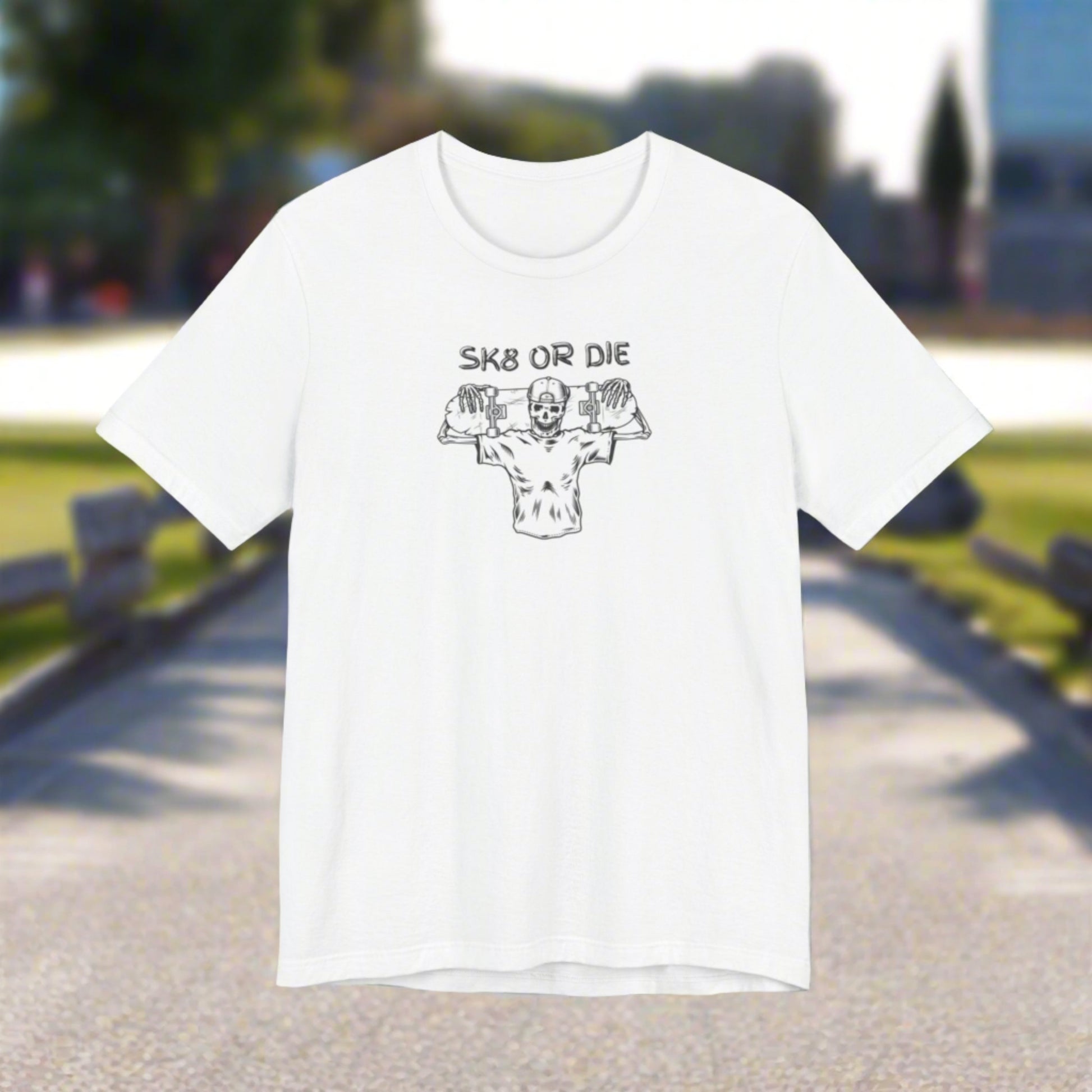 Get ready to rock with the classic SK8 or Die styled tee! Featuring a bold design, this tee is sure to turn heads and show off your unique sense of style. Don't miss out on the chance to rock this tee and make a statement!