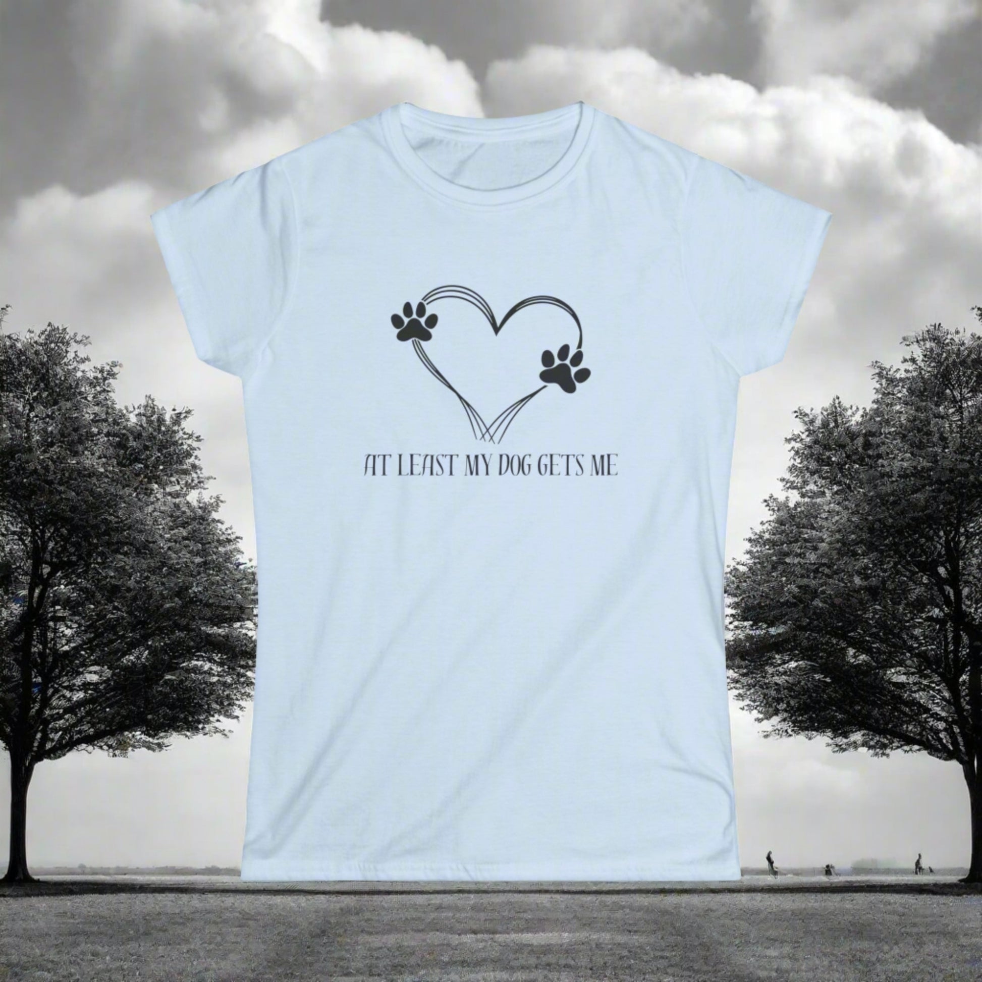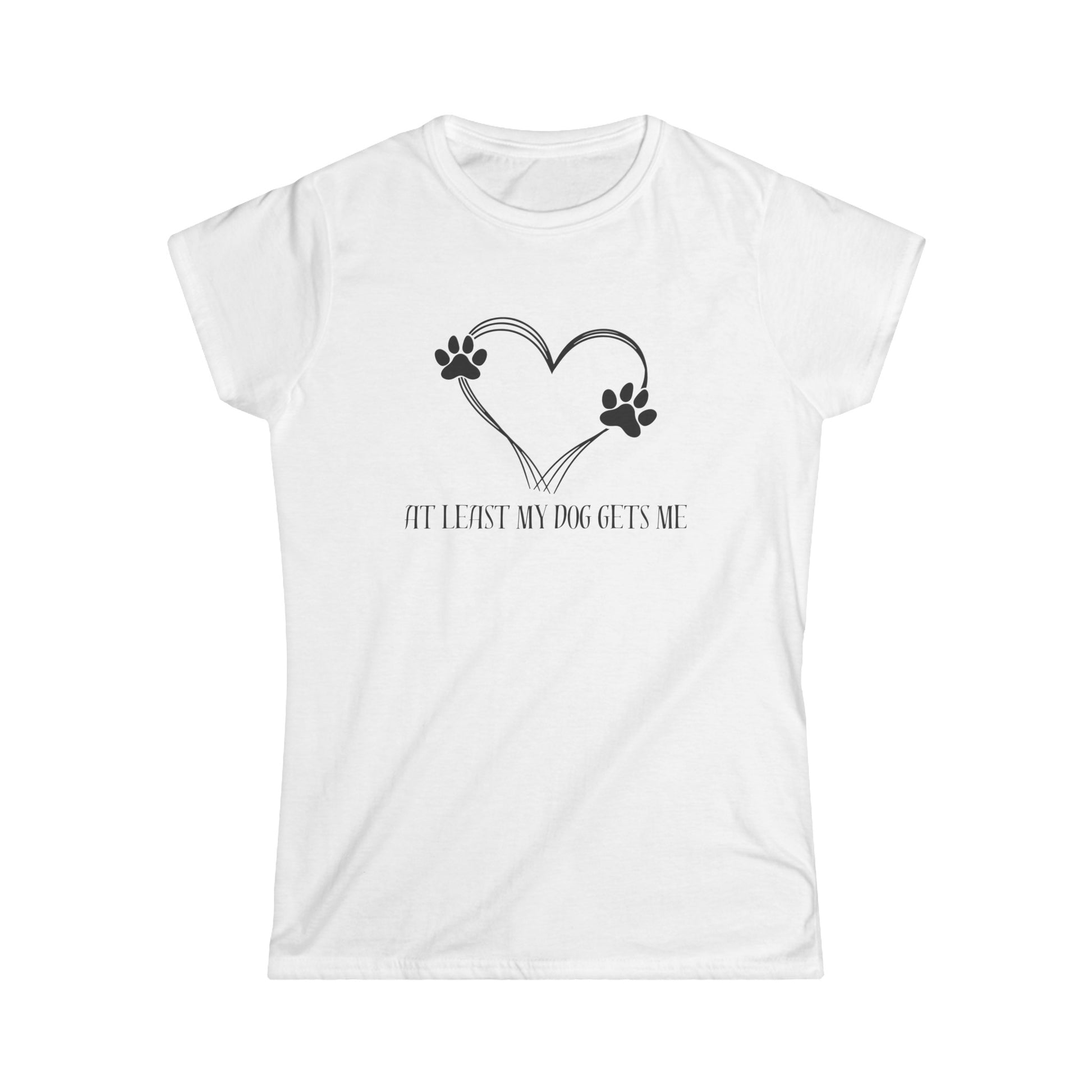 Celebrate the unconditional love between woman and dog with this "At least my dog gets me" tee. This shirt will surely bring a smile to your face. Perfect for dog lovers and those who don't take themselves too seriously.